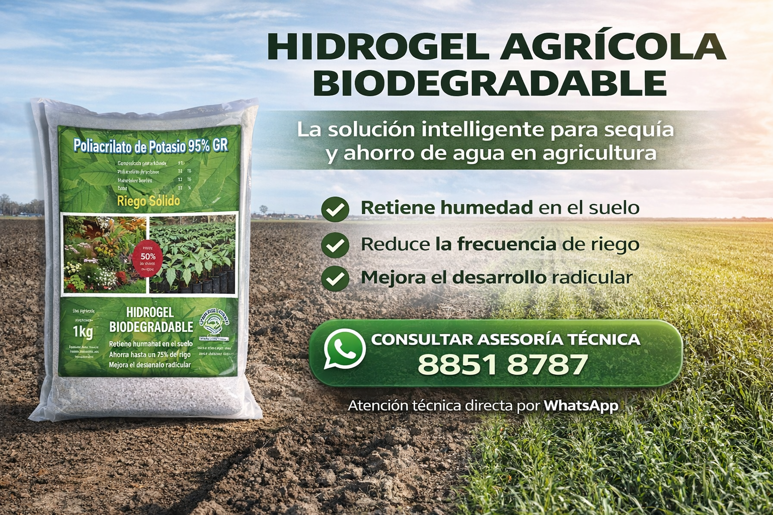 Hidrogel agrícola: agua disponible justo donde la planta la necesita