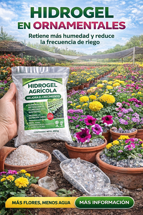- Mejora la supervivencia en trasplantes de ornamentales usando hidrogel en la mezcla de sustrato.