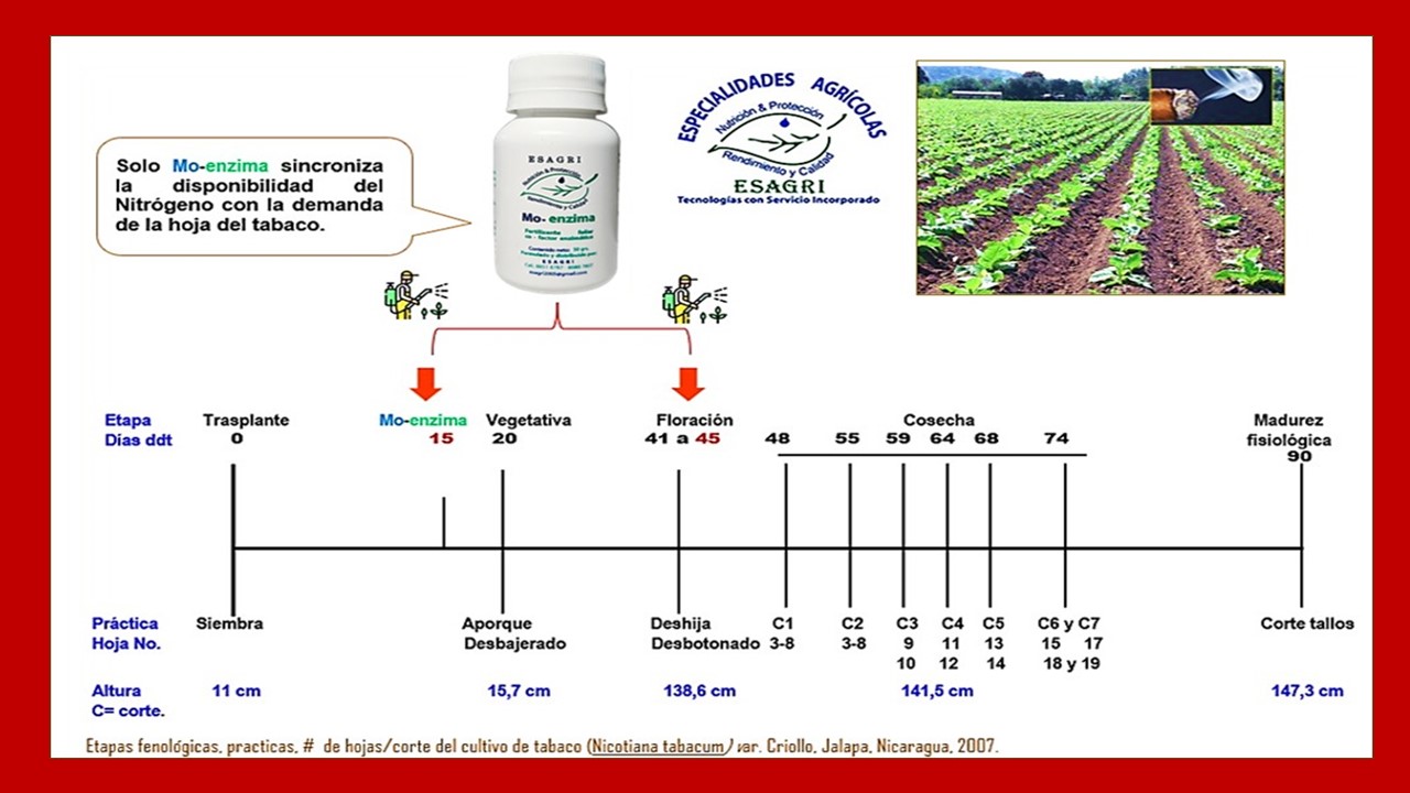 Mo-enzima sincroniza la disponibilidad del nitrógeno con la demanda real de la hoja de tabaco desde la etapa vegetativa.